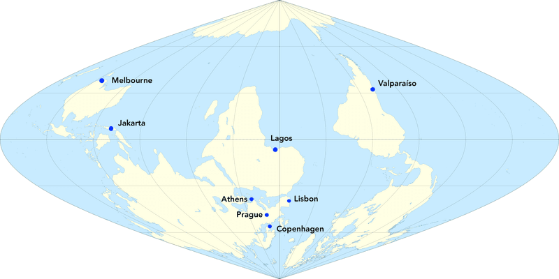The eight cities selected as case studies were: Lagos (Nigeria), Prague (Czechia), Lisbon (Portugal), Melbourne (Australia), Copenhagen (Denmark), Jakarta (Indonesia), Valparaíso (Chile), and Athens (Greece).